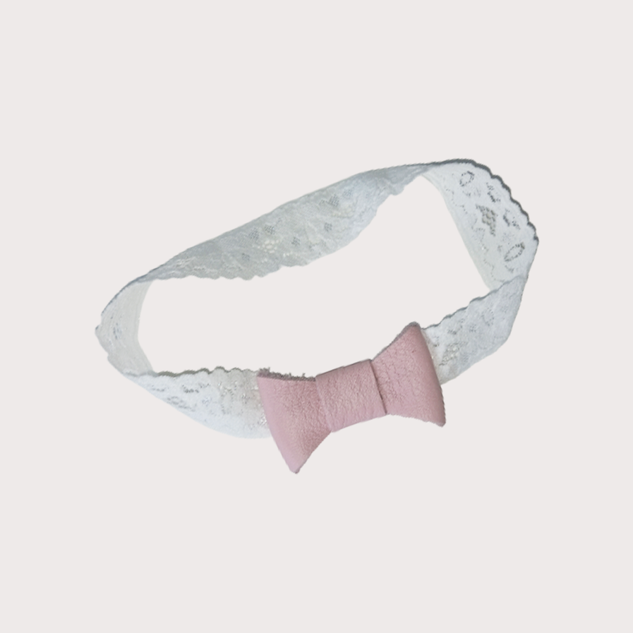 Pitta-Patta Headband Princess Pink Flat Bow | White Stretch Lace